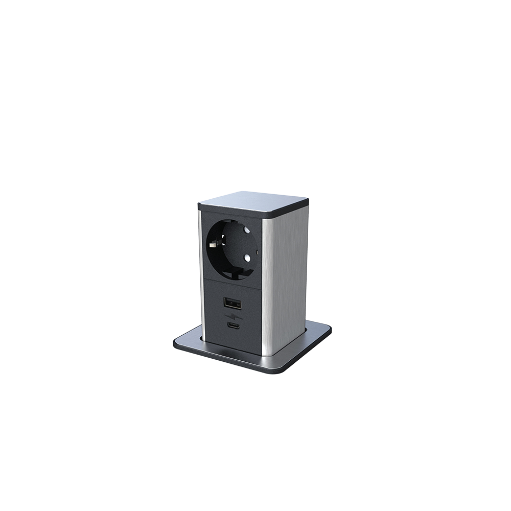 POP UP 1xSHUKO SOCKET+ 1xUSB A/C 20W, BLACK/INOX